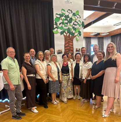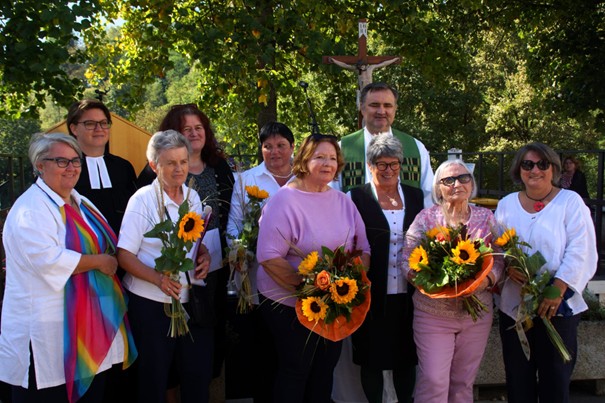 Bereits im Herbst des Vorjahres kamen die Ehrenamtlichen des Teams Bad Radkersburg sowie zahlreiche Besucher*innen auf dem Gelände des Trauteums in Trautmannsdorf zusammen, um das 25-jährige Bestehen ihres Hospizteams zu feiern. Auf einen ökumenischen Wortgottesdienst, einfühlsam umrahmt von der Musikgruppe „Kleeblatt“, folgten Grußworte von Teamleiterin Rosa Maria Haas. Sabine Janouschek, Geschäftsführerin des Hospizvereins Steiermark, ließ die vergangenen 25 Jahre Revue passieren und erinnerte daran, wieviel Pionierarbeit die vier Gründungsmitglieder Monika Benigni, Anneliese Matko, Christa Minauf und die leider schon verstorbene Rosemarie Harter geleistet hatten. Nach dem offiziellen Teil, bei dem die zwei anwesenden Gründungsmitglieder Monika Benigni und Anneliese Matko sowie drei Ehrenamtliche für ihre 20-jährige Mitarbeit geehrt wurden, ging es ans Feiern.
