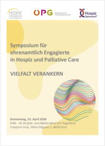 Von 23.-25. April 2026 findet in Graz der 9. Österreichische Interprofessionelle Palliativkongress (ÖPG-Kongress) statt. Der erste Tag des Kongresses, der 23. April 2026, ist dem Ehrenamt gewidmet. Neben Fachvorträgen stehen Austausch, Vernetzung und die Weiterentwicklung unterschiedlicher Angebote für die Patient*innen und deren Angehörige im Mittelpunkt.