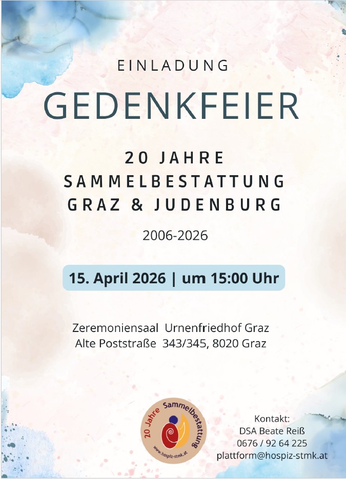 Kontakt: DSA Beate Reiß, T: 0676 / 92 64 225, E: plattform@hospiz-stmk.at